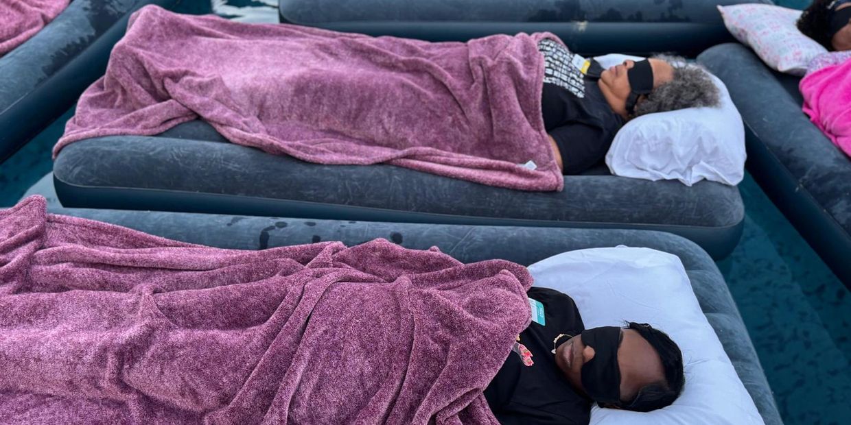 Whether floating or resting on land, each guest is provided with a plush blanket, supportive pillow, and eye mask to encourage complete relaxation and comfort.